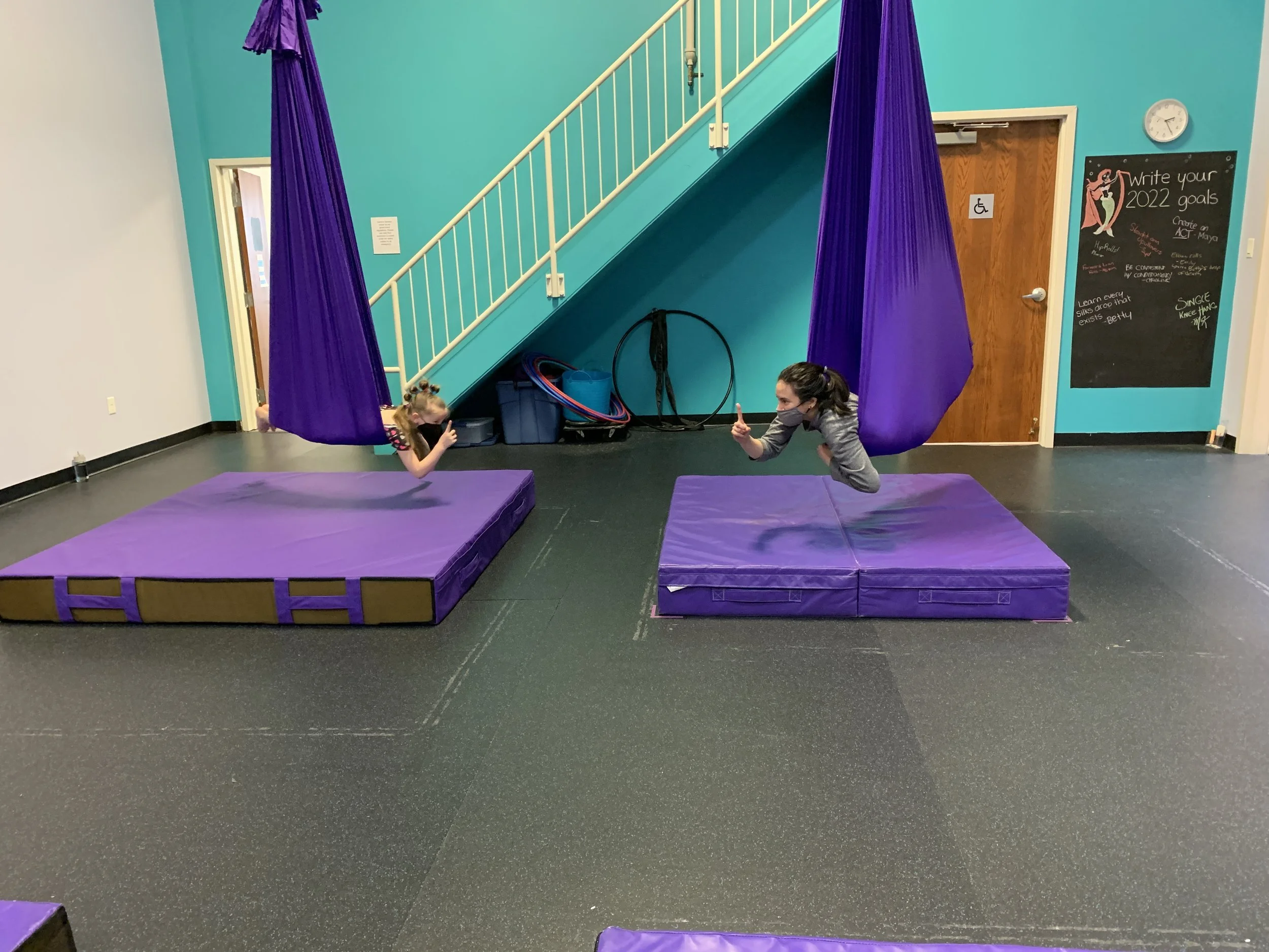 Please Note: We apologize but, in order to keep participants safe and injury free, we can not offer Aerial Silks in a party environment unless all participants are already experienced aerial students (inquire with the studio if this is the case). Aerial Hammock (a single loop of wide "silks" fabric) is the gateway apparatus to Aerial Silks in our curriculum, and is still super fun and challenging.